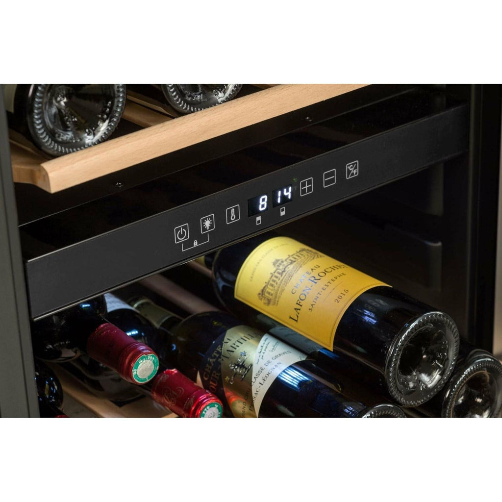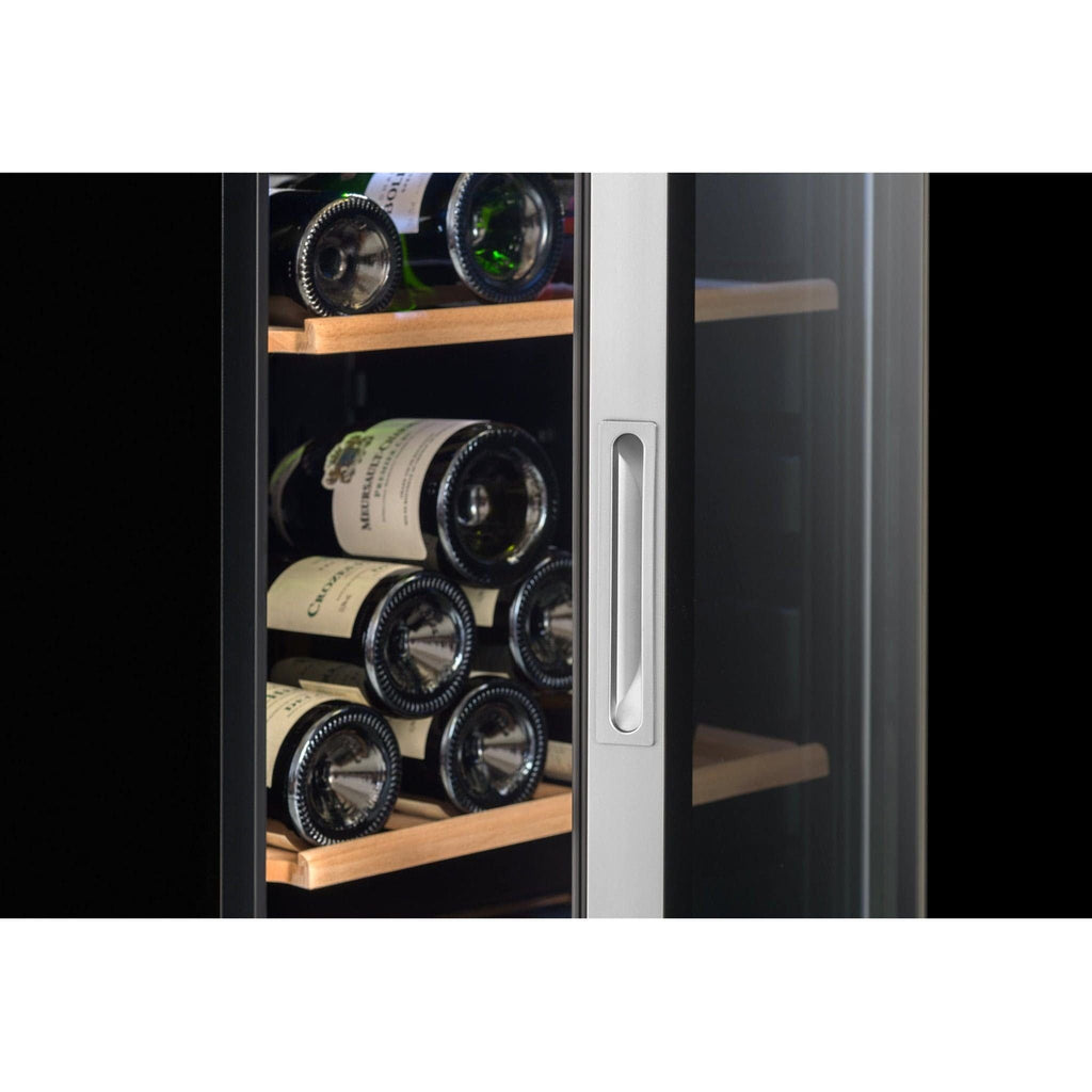The capacity of 91 Bordeaux bottles makes this unit ideal for customers who have smaller collections of 80-100 bottles or for those who want to use it for serving temperatures. the forced air cooling system the temperature inside the cooler is consistent and can be lit up with the internal LED lighting which is white.